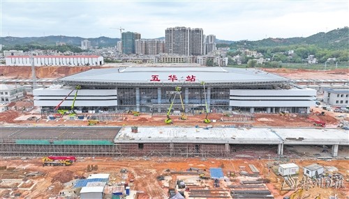 五華站主體結(jié)構(gòu)、鋼結(jié)構(gòu)金屬屋面已完成。(林翔 攝)