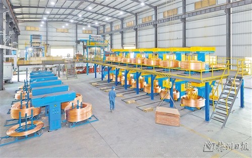 梅州是著名的銅箔之鄉(xiāng),擁有嘉元科技、盈華電子、龍宇覆銅板等一批銅行業(yè)領(lǐng)軍型企業(yè)。為補(bǔ)足梅州銅產(chǎn)業(yè)集群短板、完善產(chǎn)業(yè)鏈,2024年,在市委、市政府的引導(dǎo)下,廣梅指揮部在梅州融灣產(chǎn)業(yè)園(廣梅產(chǎn)業(yè)園)引進(jìn)銅桿(銅線)制造企業(yè)——晟鑫公司,通過租賃廠房建設(shè)晟鑫銅壓延加工基地,向我市銅產(chǎn)業(yè)下游企業(yè)供應(yīng)銅桿成品。