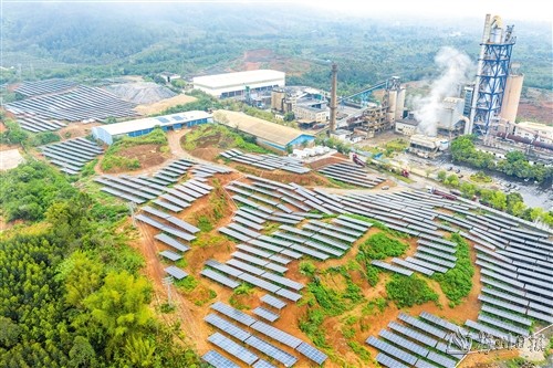 在梅州金塔水泥有限公司光伏發(fā)電項(xiàng)目建設(shè)現(xiàn)場(chǎng),記者看到,莽莽山坡上,排列整齊的光伏板一眼望不到頭,像是走進(jìn)一片“藍(lán)色海洋”。待太陽露臉,這一塊塊光伏板便可將太陽能源源不斷地轉(zhuǎn)化為電能?!按舜畏植际焦夥l(fā)電項(xiàng)目建設(shè)規(guī)模為10.085兆瓦,總投資3630萬元,共設(shè)置了18000多塊光伏板?!?塔牌集團(tuán)副總經(jīng)理劉延?xùn)|告訴記者,為踐行企業(yè)綠色、低碳、可持續(xù)發(fā)展的生產(chǎn)理念,進(jìn)一步推動(dòng)實(shí)現(xiàn)“碳達(dá)峰”“碳中和”,塔牌集團(tuán)首次進(jìn)軍光伏領(lǐng)域,在梅州3個(gè)基地共建設(shè)有35兆瓦規(guī)模的光伏發(fā)電儲(chǔ)能一體化項(xiàng)目。項(xiàng)目采取“就近接入、自發(fā)自用、余電上網(wǎng)”的方式大幅減少企業(yè)外購用電成本,促進(jìn)清潔生產(chǎn),低碳生產(chǎn),降低能源消耗和碳排放,切實(shí)增強(qiáng)該公司水泥主業(yè)核心競(jìng)爭(zhēng)力。