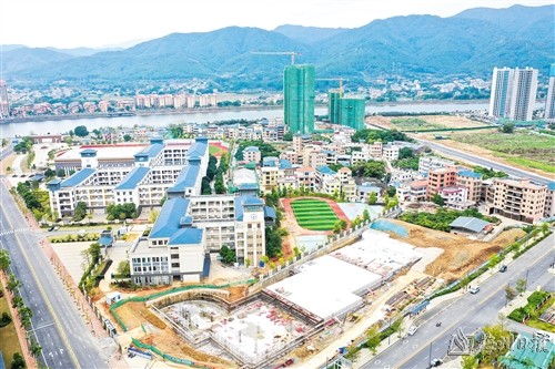 桂嶺學(xué)校改擴建(中學(xué))項目已完成總工程量的60%,交付使用后將新增30個班、1500個學(xué)位。(圖片來源:梅州日報 吳騰江 攝)