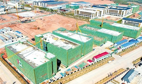 梅州平遠(yuǎn)高新區(qū)標(biāo)準(zhǔn)廠房建設(shè)施工現(xiàn)場。(圖片來源:梅州日報 袁志鵬 攝)