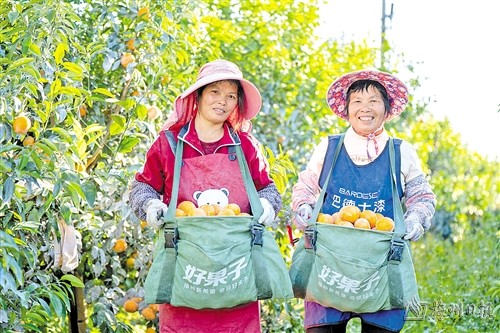 龍?zhí)镦?zhèn)坪見村千畝沃柑園喜迎豐收。