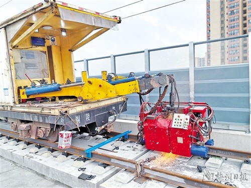 梅龍高鐵焊軌作業(yè)現(xiàn)場。(李方 攝)