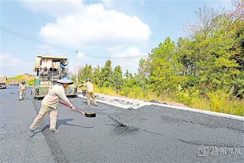 梅縣區(qū)西部旅游快線梅西鎮(zhèn)施工現(xiàn)場正在鋪設(shè)瀝青路面。(吳麗伶 攝)
