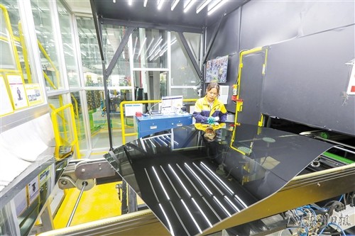 走進(jìn)廣梅產(chǎn)業(yè)園的梅州圣戈班高端汽車(chē)玻璃生產(chǎn)車(chē)間內(nèi),只見(jiàn)機(jī)器高速運(yùn)轉(zhuǎn),機(jī)械手臂在有條不紊操作,工人開(kāi)著叉車(chē)來(lái)回運(yùn)輸成品,呈現(xiàn)出一派火熱景象。