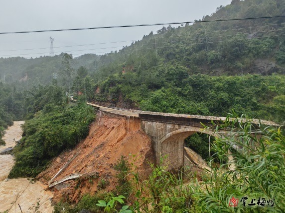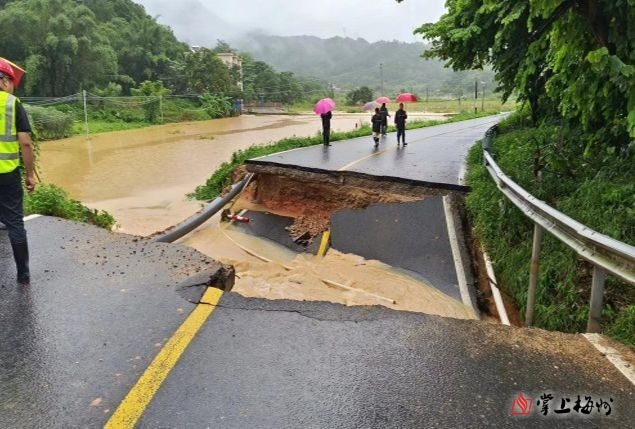 省道226線五華三度水橋頭路基沖毀。