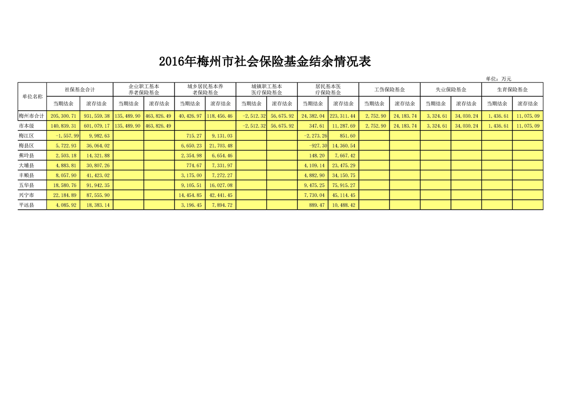 梅州市人民政府門戶網(wǎng)站 梅州市財(cái)政局 2016年度 2016年梅州市社會(huì)保險(xiǎn)基金結(jié)余情況表
