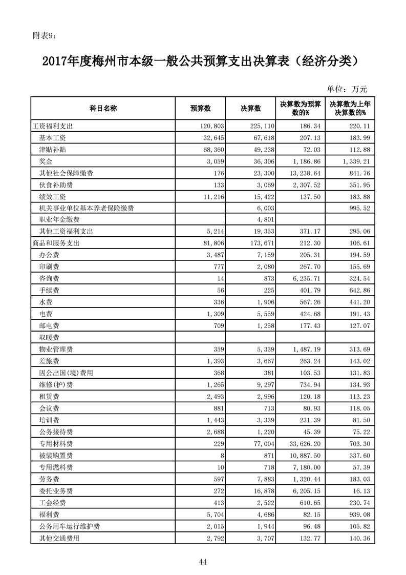 梅州市人民政府門戶網(wǎng)站 梅州市財政局 2017年度 附表9:2017年度市本級一般公共預(yù)算支出決算表(經(jīng)濟分類)