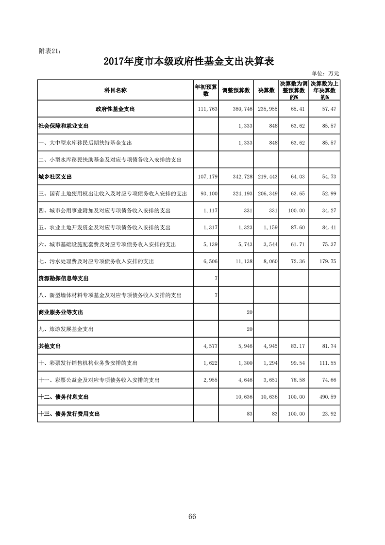 梅州市人民政府門戶網(wǎng)站 梅州市財政局 2017年度 附表21:2017年市本級基金支出決算表