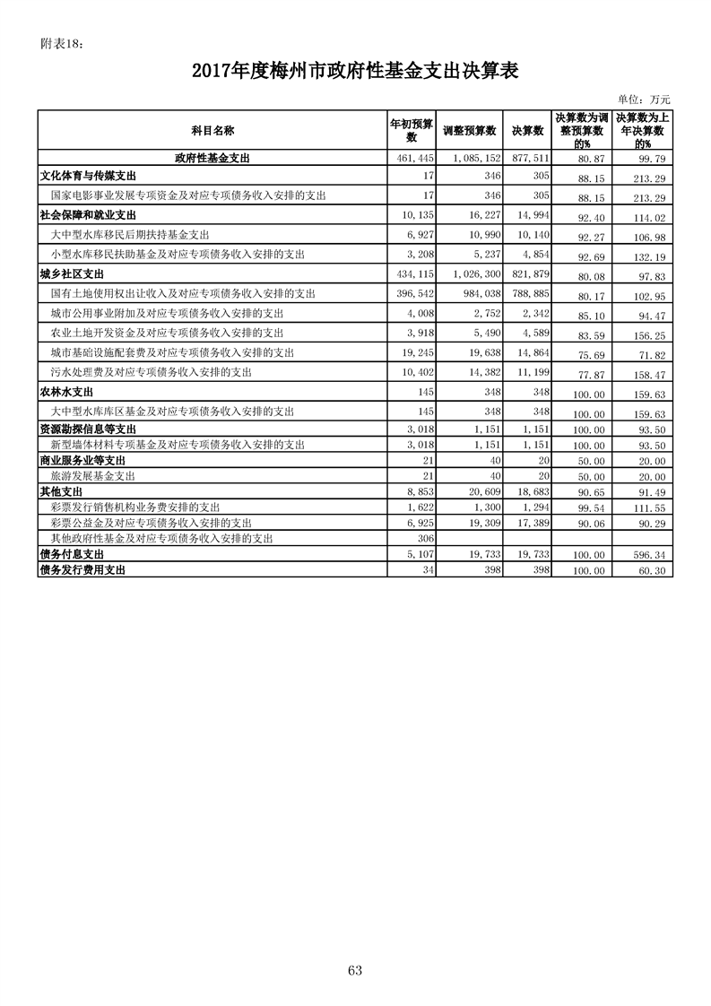 梅州市人民政府門(mén)戶網(wǎng)站 梅州市財(cái)政局 2017年度 附表18:2017年梅州市基金支出決算表