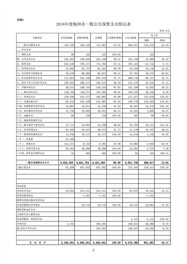 (附表2)2018年度梅州市一般公共預算支出情況表