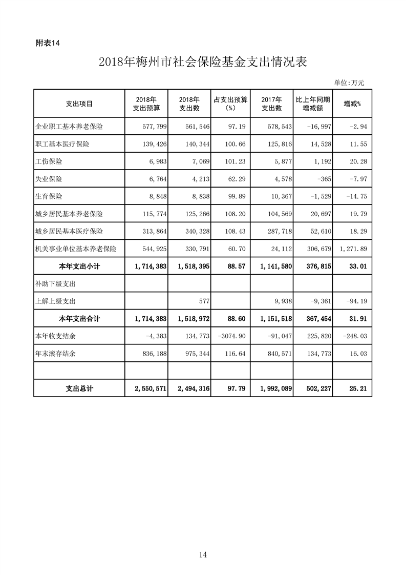 (附表14)梅州市社會(huì)保險(xiǎn)基金支出情況表
