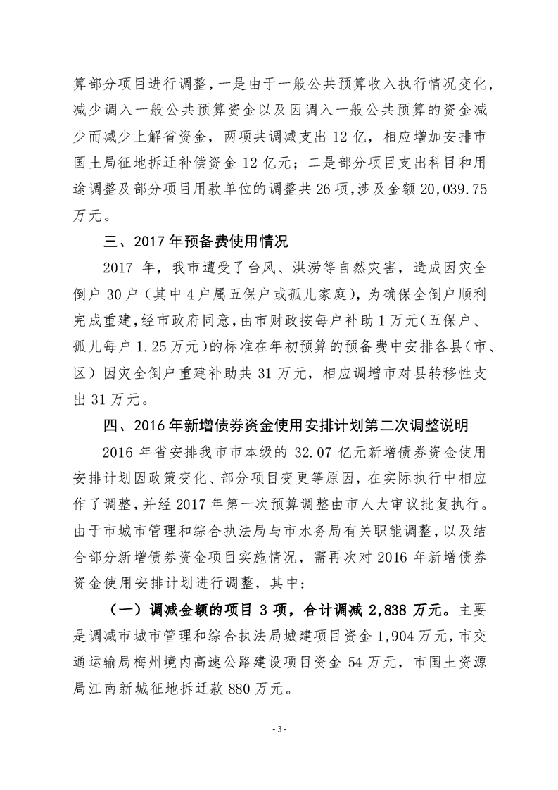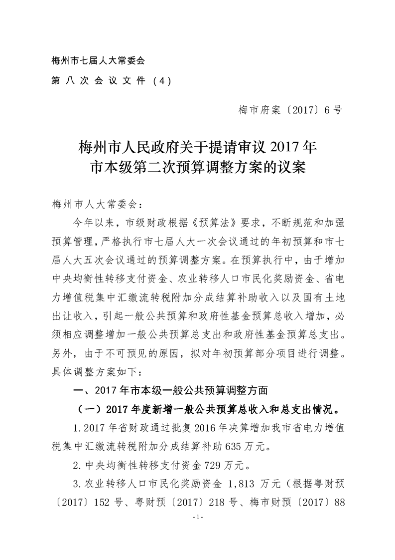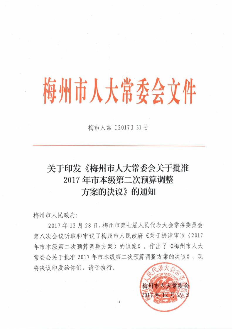 梅州市人民政府門戶網(wǎng)站 梅州市財政局 2017年度 關于印發(fā)《梅州市人大常委會關于批準2017年市本級第二次預算調(diào)整方案的決議》的通知