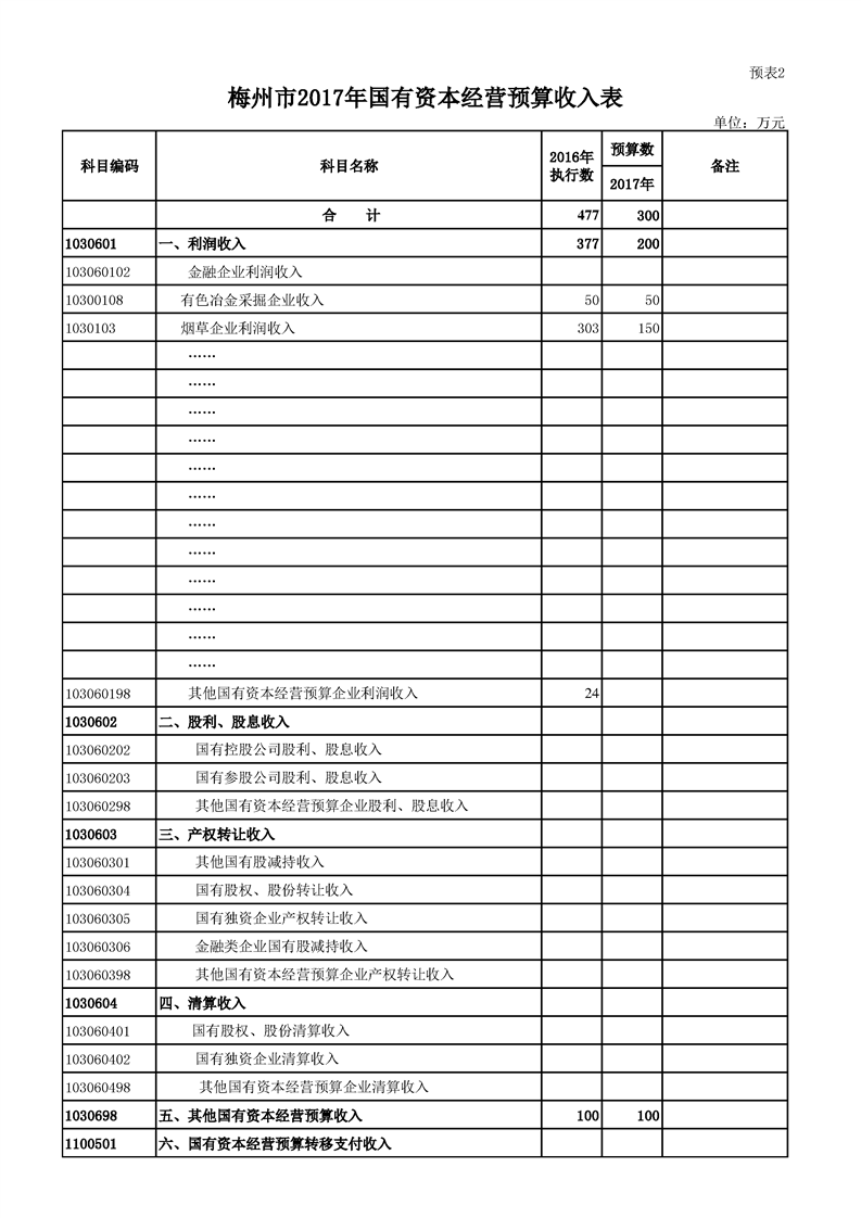 梅州市2017年國(guó)有資本經(jīng)營(yíng)預(yù)算收入表