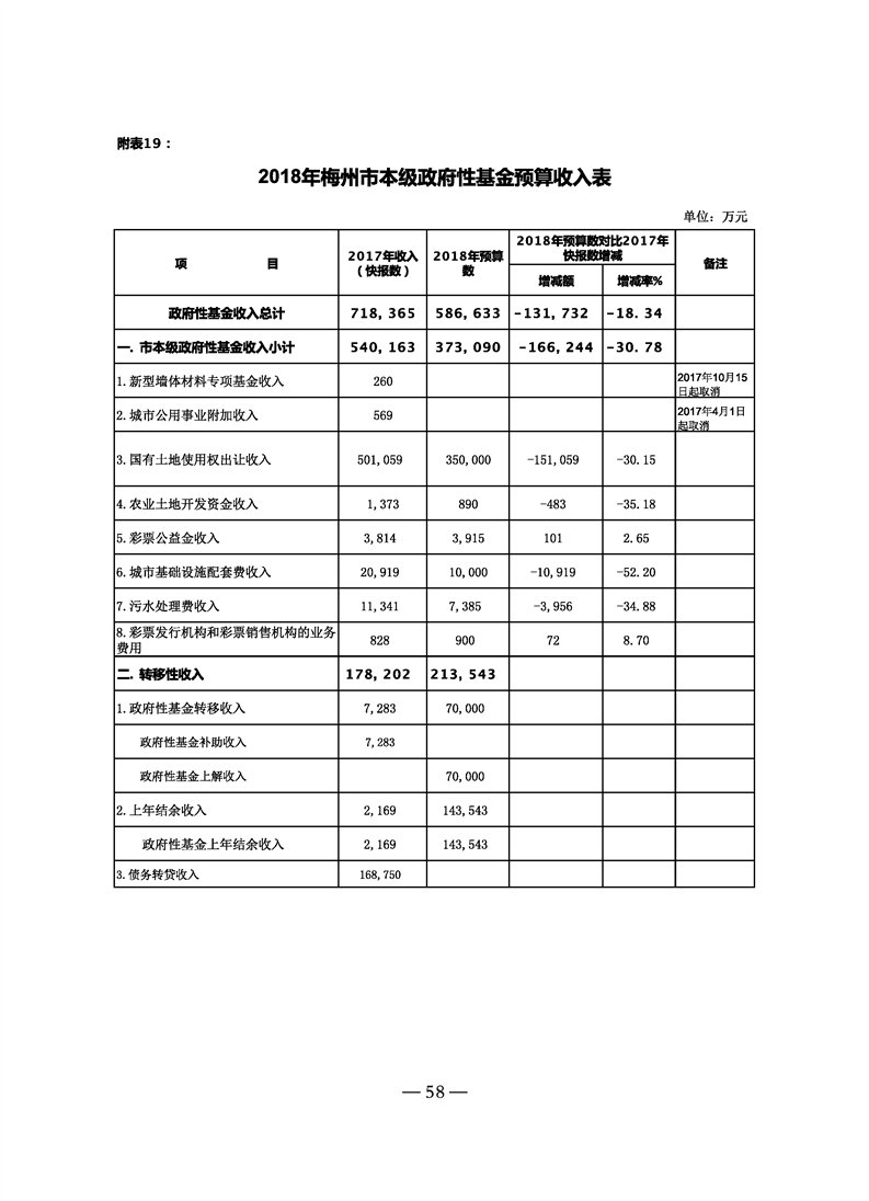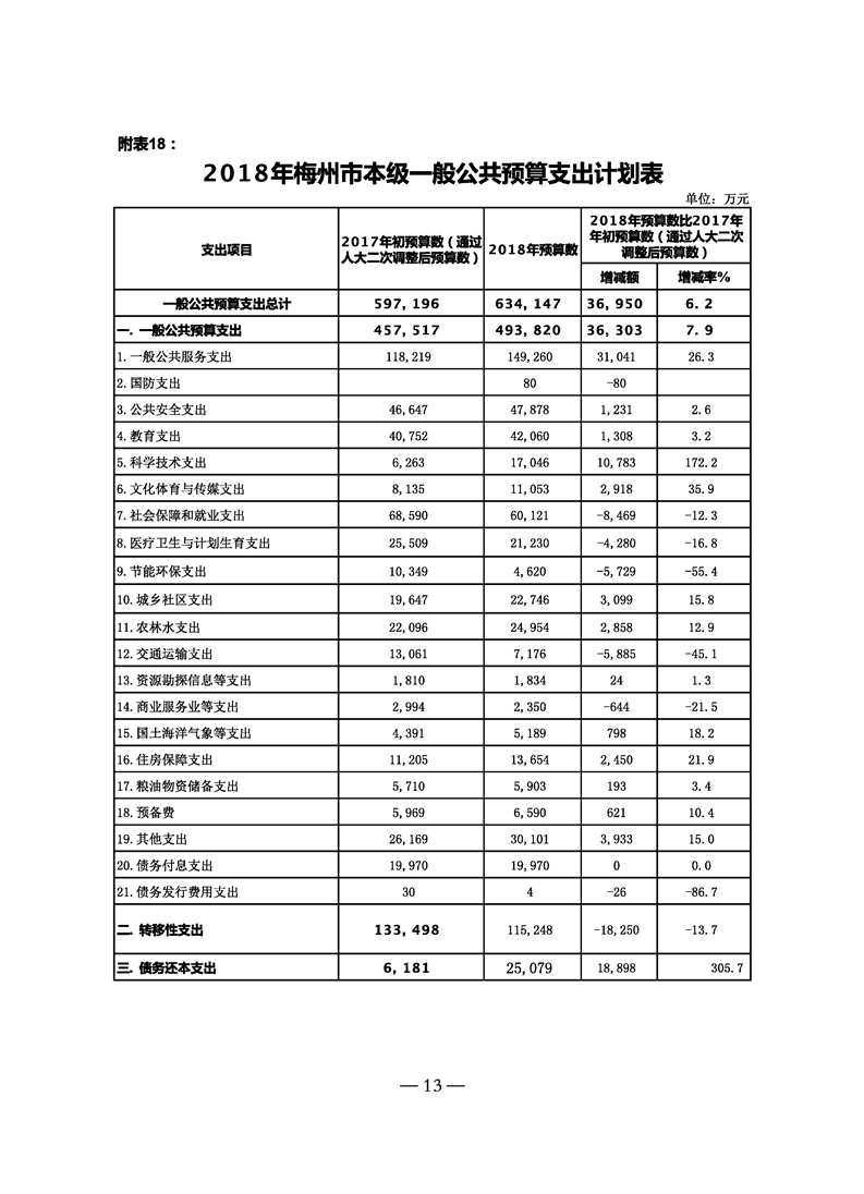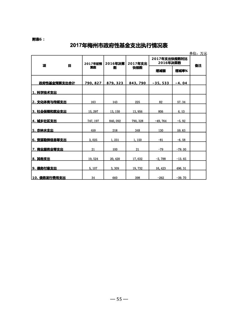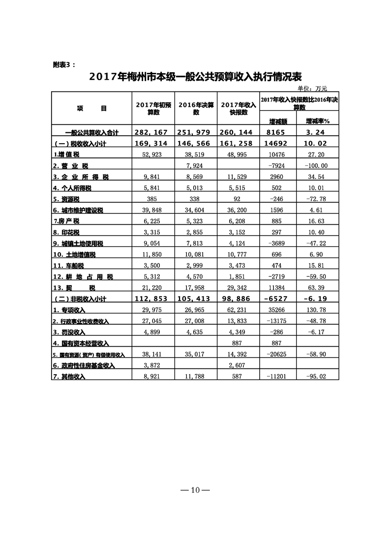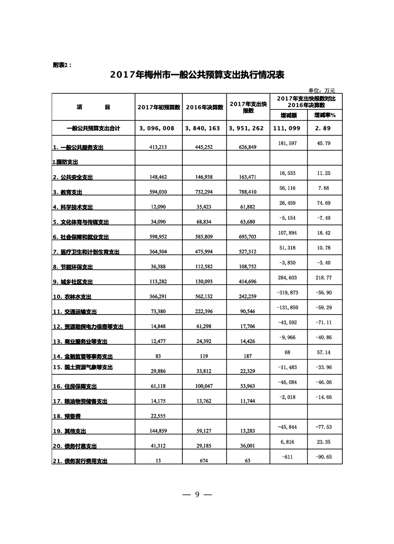 梅州市2017年預(yù)算執(zhí)行情況和2018年預(yù)算草案報告附件