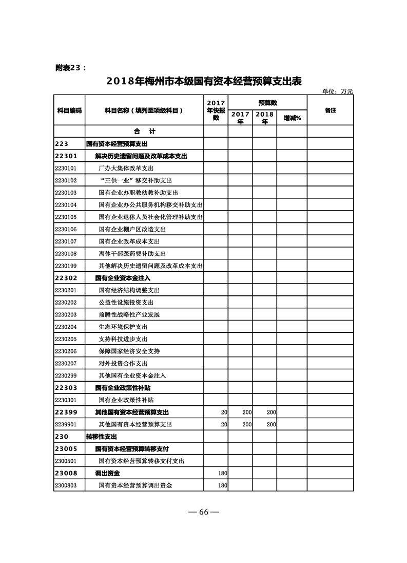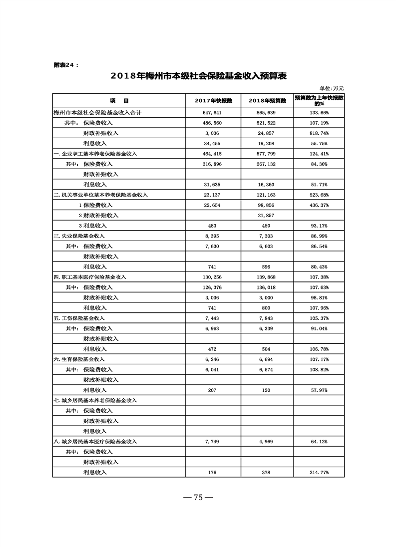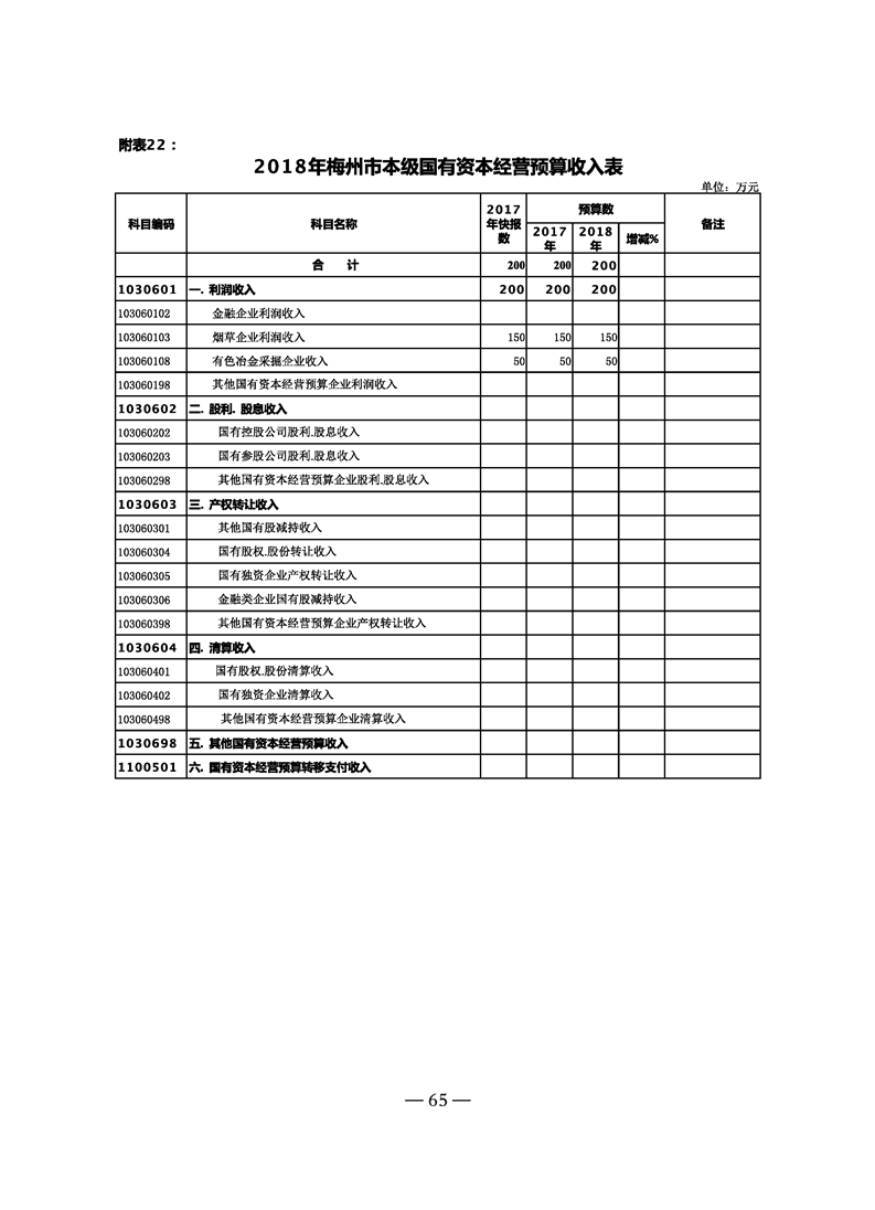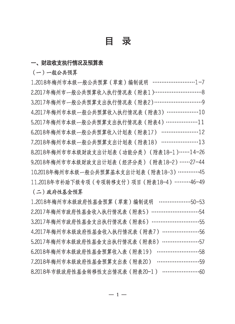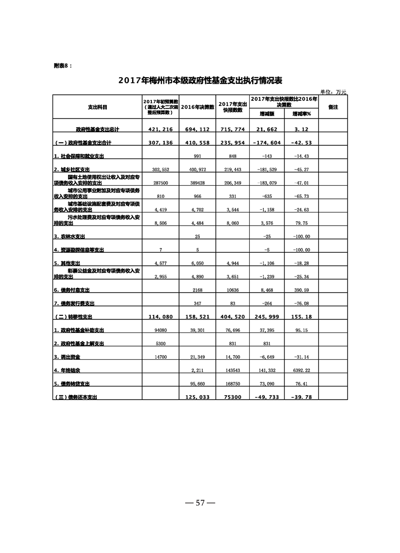 梅州市2017年預(yù)算執(zhí)行情況和2018年預(yù)算草案報告附件