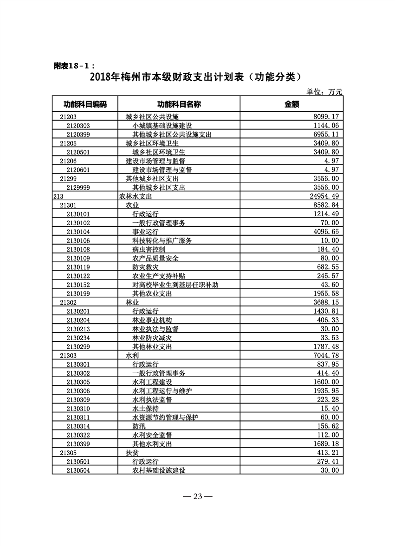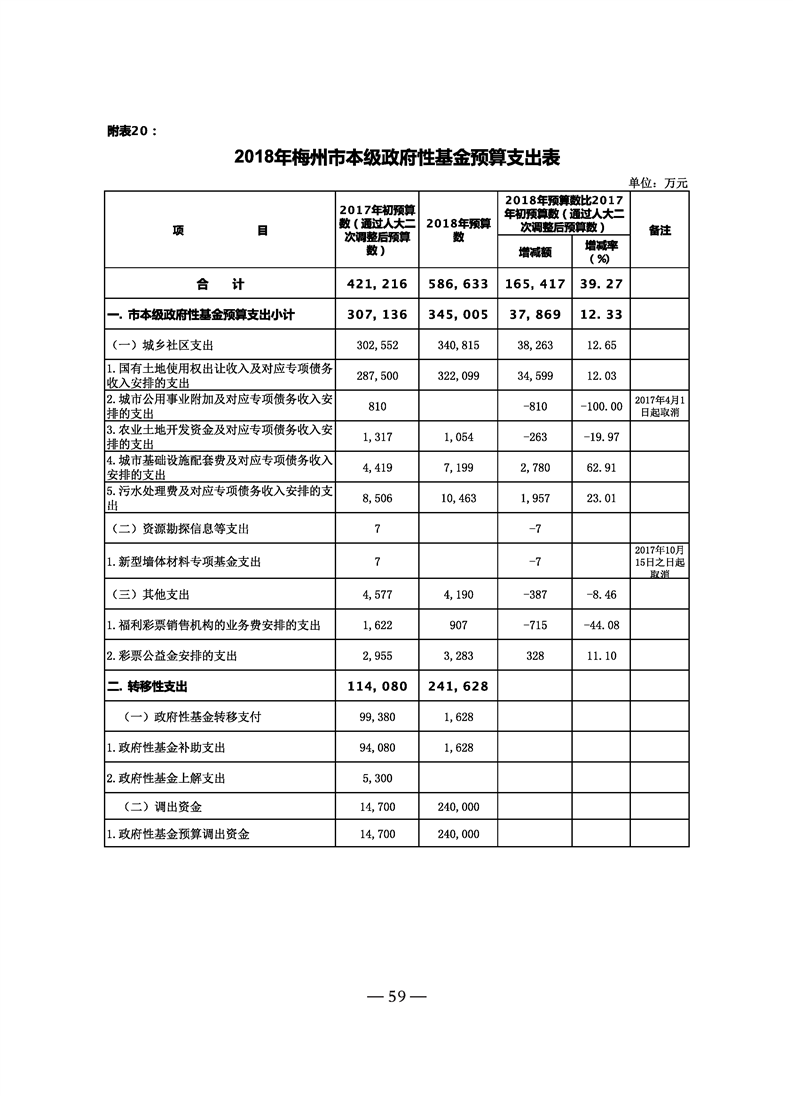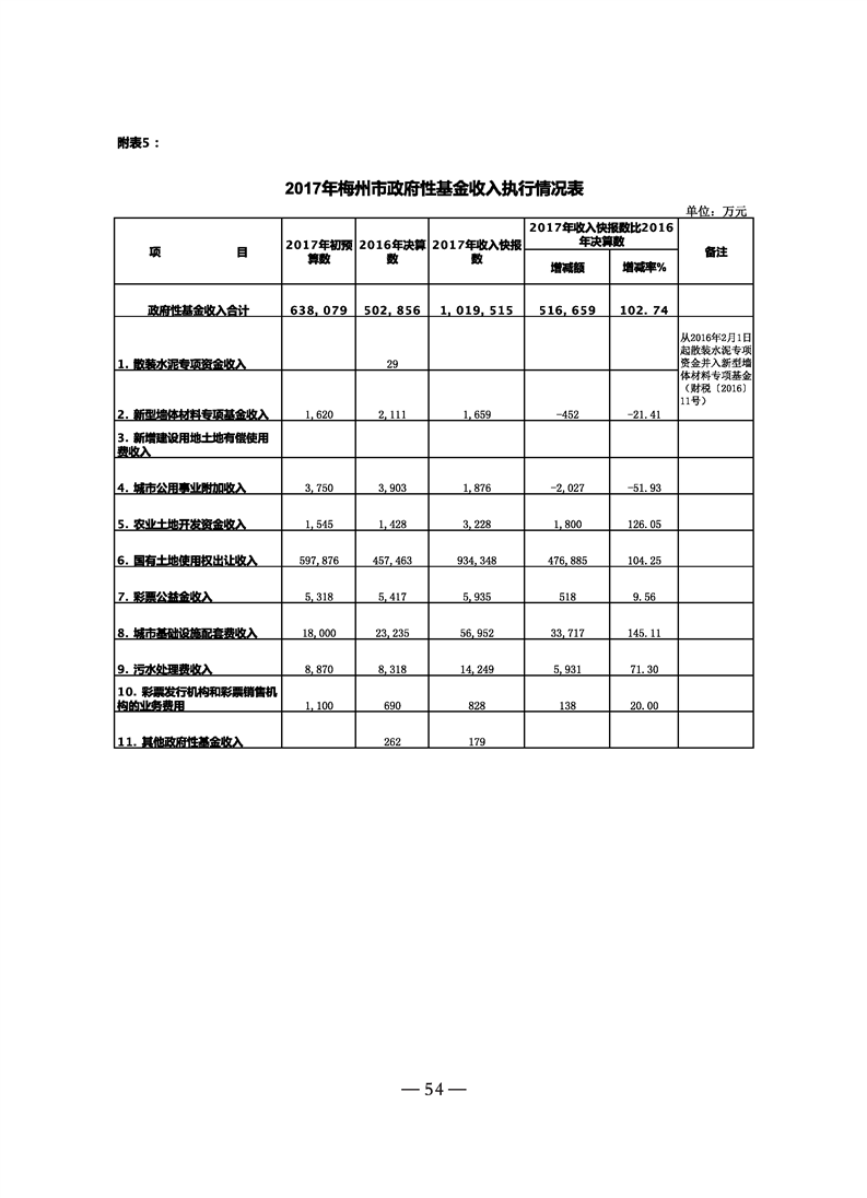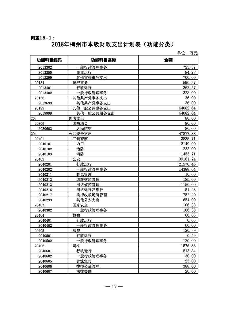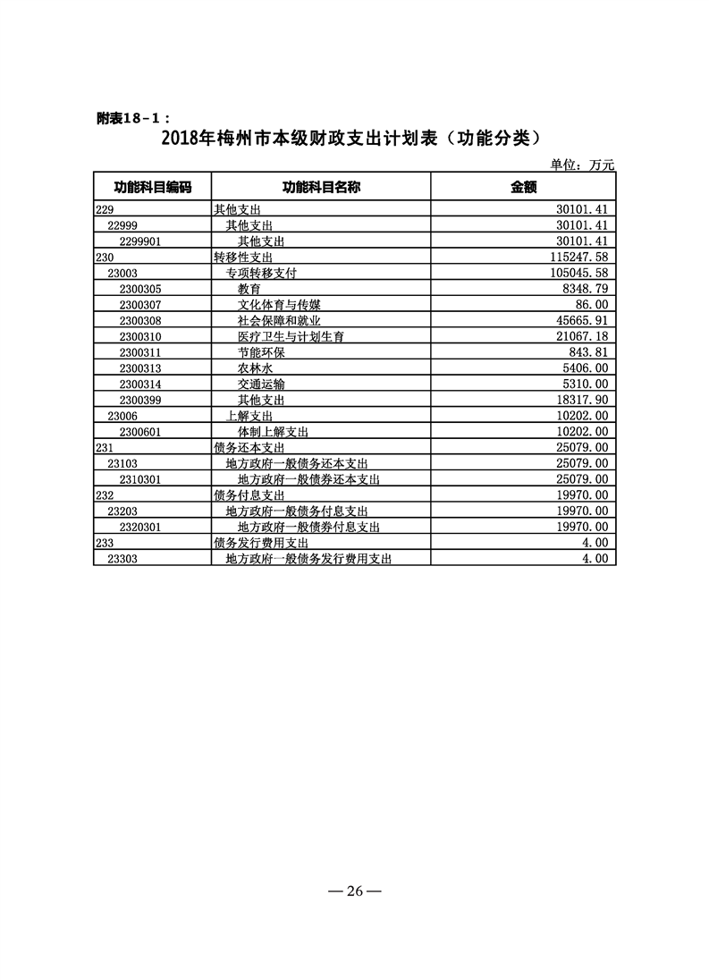 梅州市2017年預(yù)算執(zhí)行情況和2018年預(yù)算草案報告附件