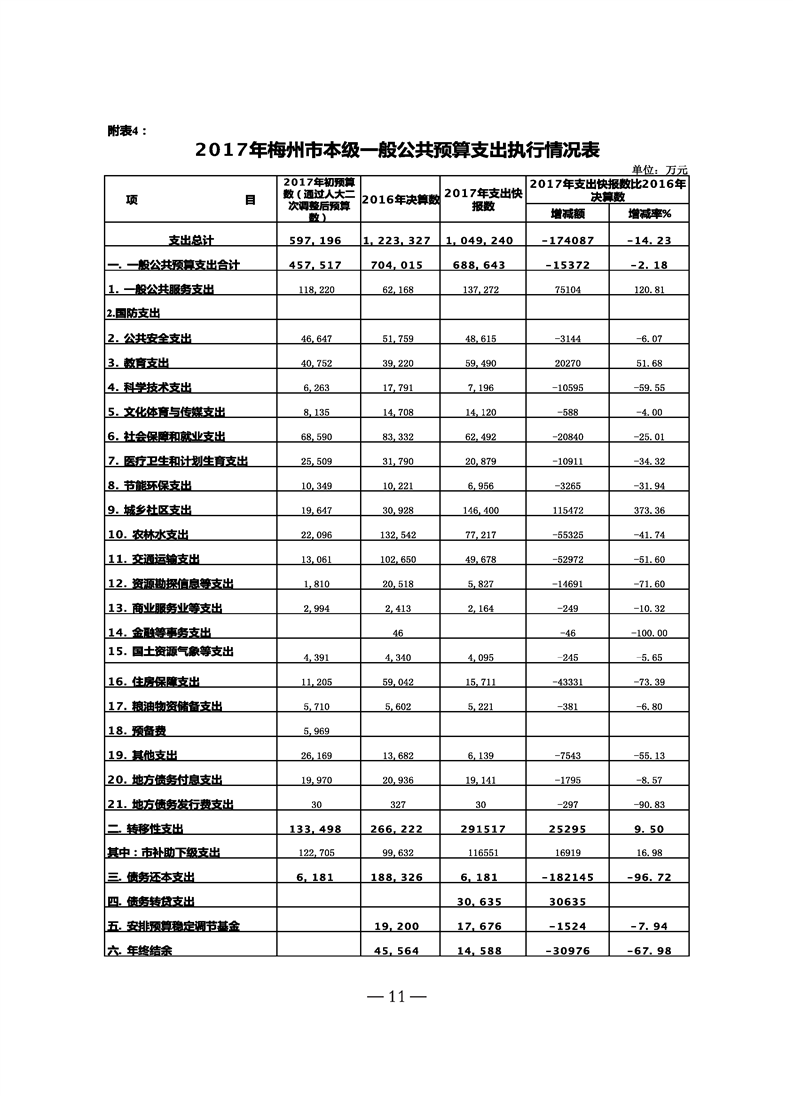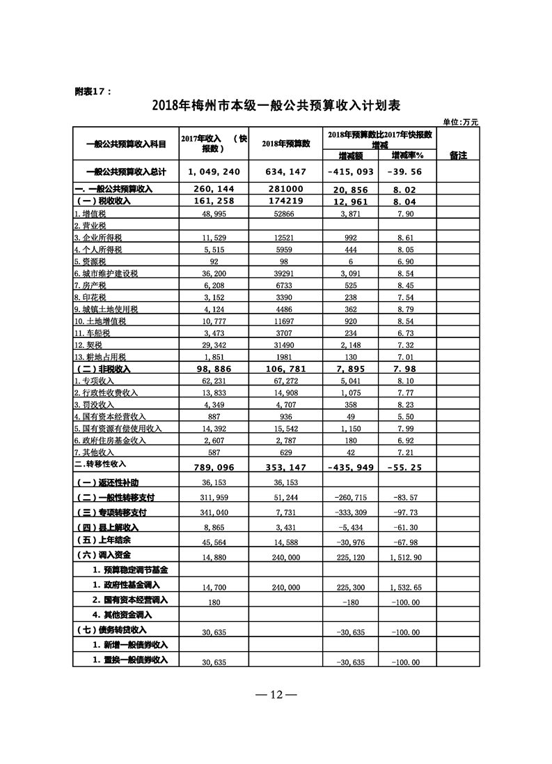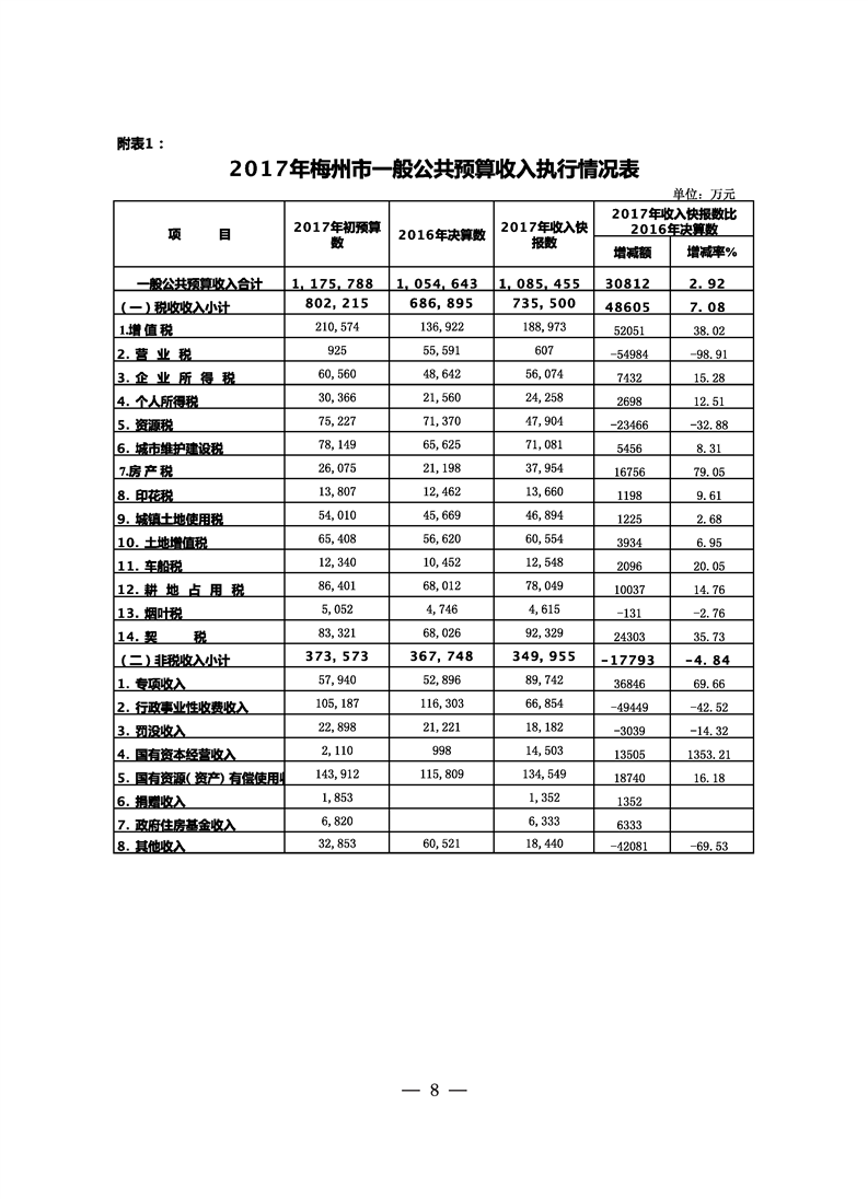梅州市人民政府門戶網(wǎng)站 梅州市財政局 2018年度 梅州市2017年預(yù)算執(zhí)行情況和2018年預(yù)算草案報告附件