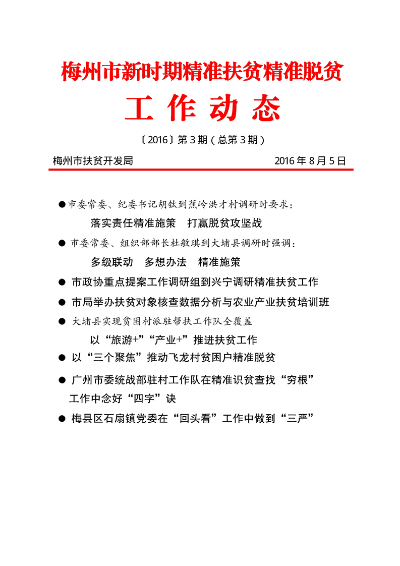 梅州市人民政府門戶網(wǎng)站 梅州市財(cái)政局 部門文件 《梅州市新時(shí)期精準(zhǔn)扶貧精準(zhǔn)脫貧工作動(dòng)態(tài)》2016年第3期