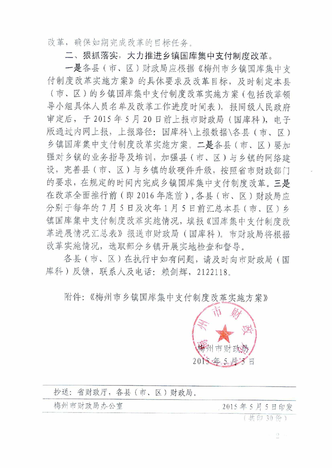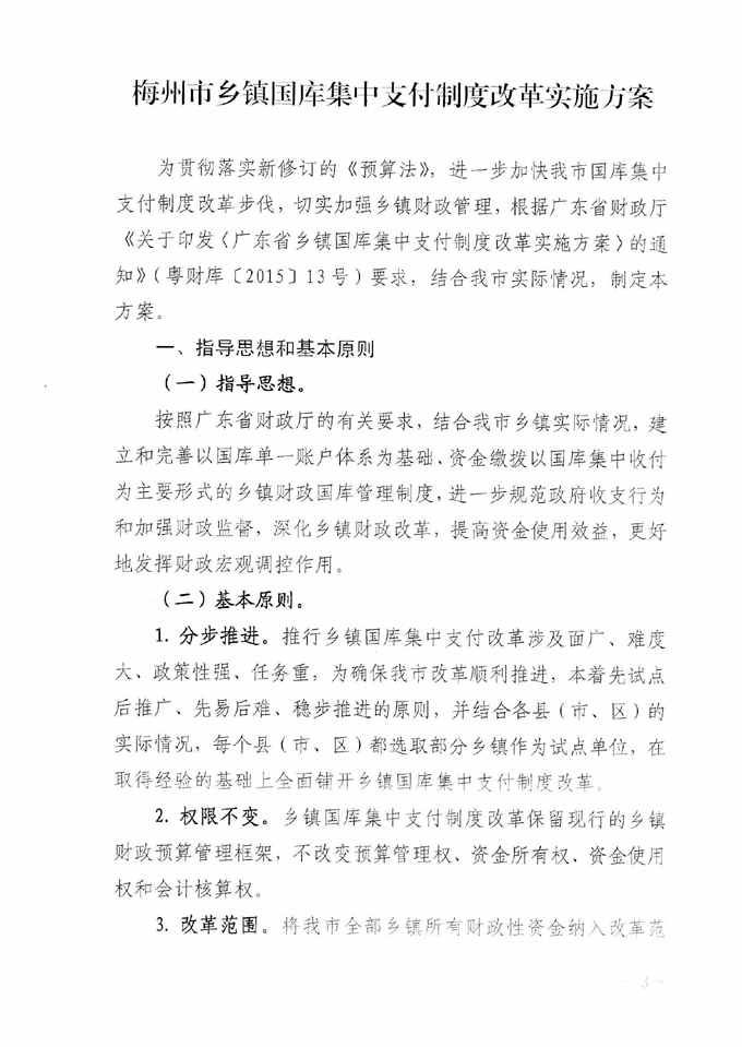 梅州市人民政府門戶網(wǎng)站 梅州市財(cái)政局 部門文件 關(guān)于印發(fā)《梅州市鄉(xiāng)鎮(zhèn)國(guó)庫(kù)集中支付制度改革實(shí)施方案》的通知