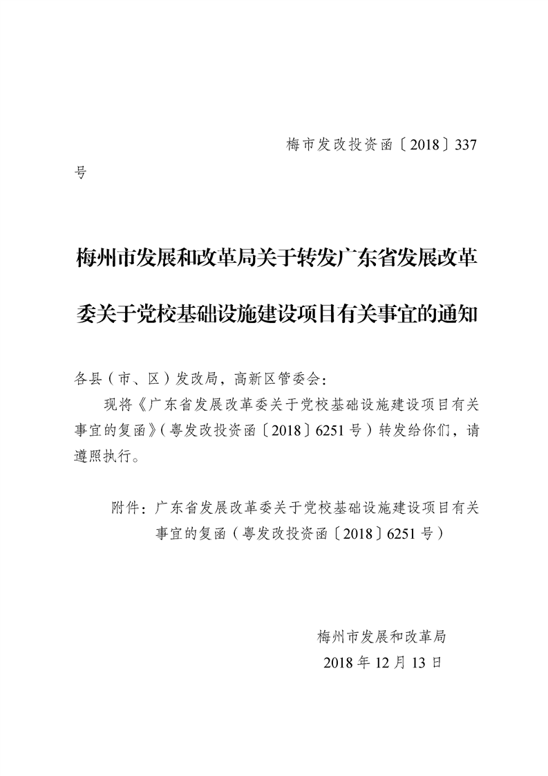 梅州市人民政府門戶網(wǎng)站 梅州市發(fā)展和改革局 相關(guān)政策 梅市發(fā)改投資函[2018]337號(關(guān)于轉(zhuǎn)發(fā)廣東省發(fā)展改革委關(guān)于黨?;A(chǔ)設(shè)施建設(shè)項(xiàng)目有關(guān)事宜的通知)