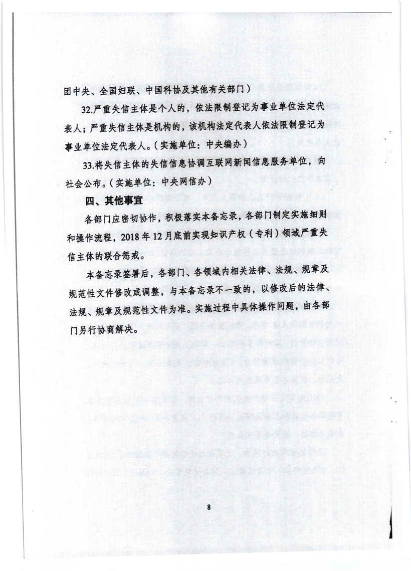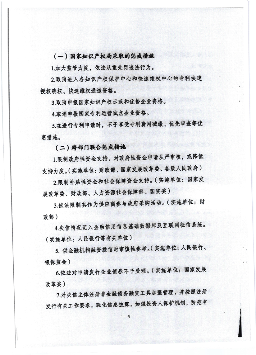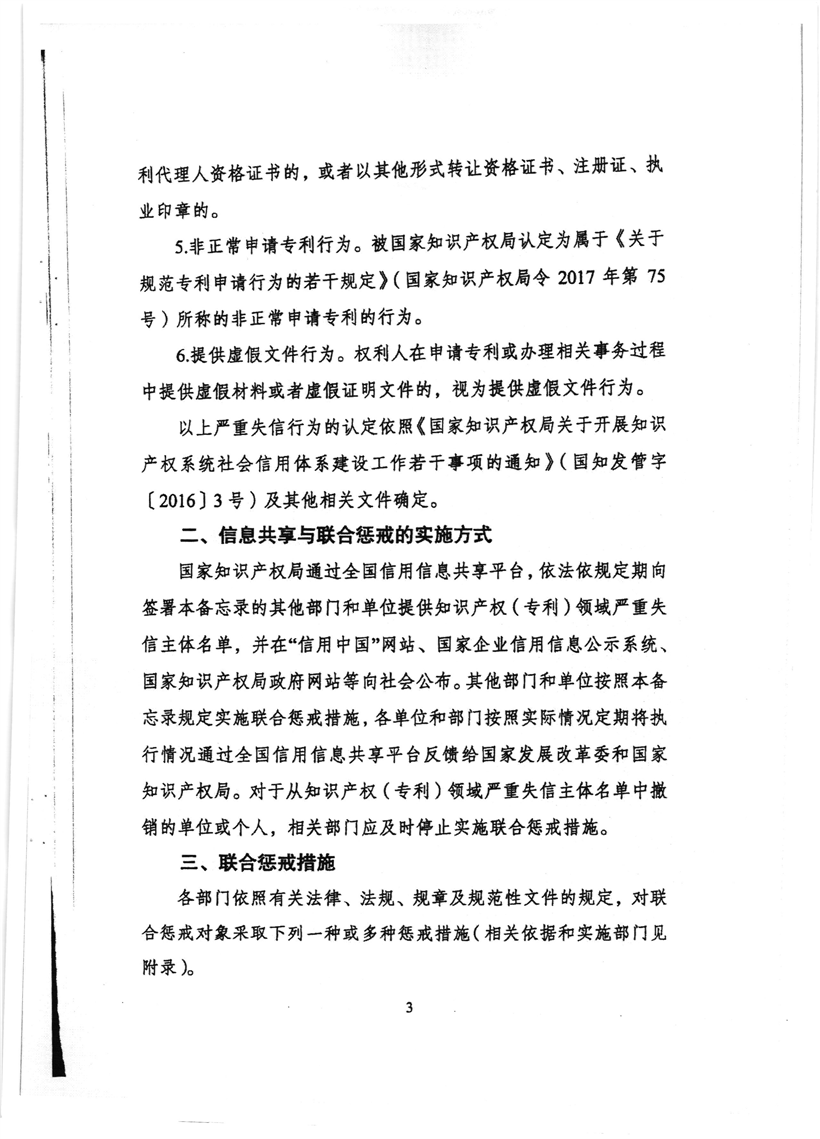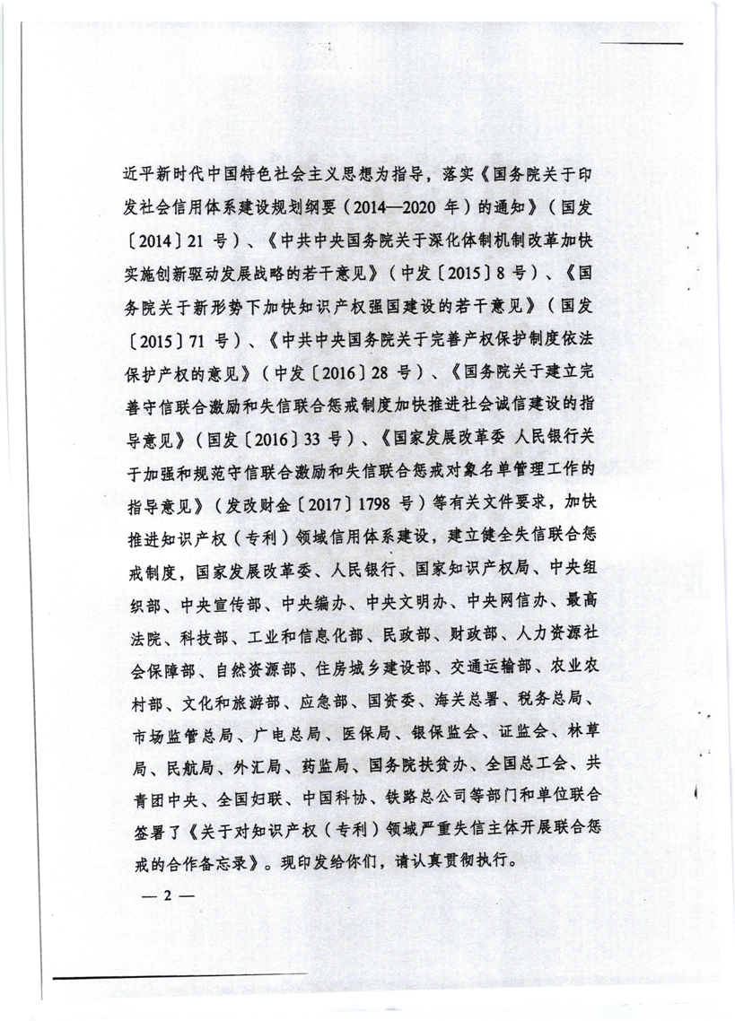 轉發(fā)省發(fā)展改革委等4部門關于知識產(chǎn)權(專利)領域嚴重失信主體開展聯(lián)合懲戒的合作備忘錄的通知