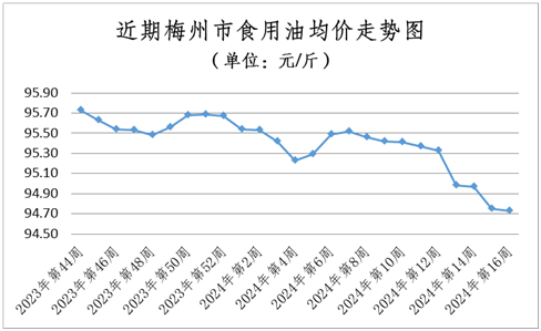 糧油價(jià)格以穩(wěn)為主。本周糧食均價(jià)為3.14元/斤,環(huán)比(與2024年第15周相比,下同)持平;食用油均價(jià)為94.73元/桶(5L),環(huán)比微降0.02%。