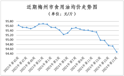 糧油價(jià)格以穩(wěn)為主。本周糧食均價(jià)為3.15元/斤,環(huán)比(與2024年第16周相比,下同)上升0.32%;食用油均價(jià)為94.47元/桶(5L),環(huán)比下降0.27%。