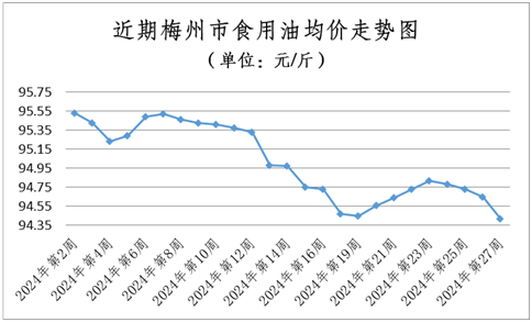 糧油價格保持穩(wěn)定。本周糧食均價為3.14元/斤,環(huán)比(與2024年第26周相比,下同)持平;食用油均價為94.42元/桶(5L),環(huán)比下降0.24%。