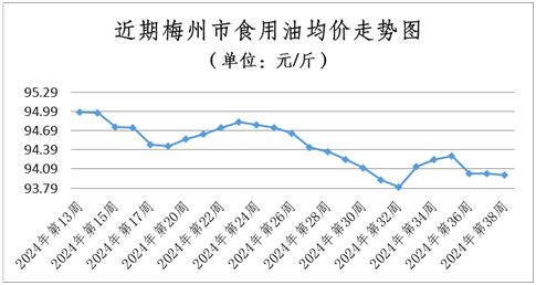 糧油價(jià)格保持穩(wěn)定。本周糧食均價(jià)為3.22元/斤,環(huán)比(與2024年第37周相比,下同)持平;食用油均價(jià)為94.00元/桶(5L),環(huán)比微降0.02%。