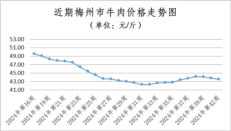 牛肉 | 元/斤 | 43.52 | -0.71% |