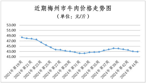 牛肉 | 元/斤 | 42.85 | -0.49% |