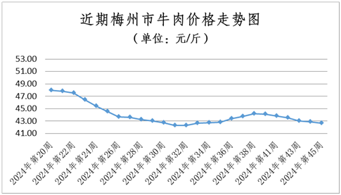 牛肉 | 元/斤 | 42.69 | -0.37% |