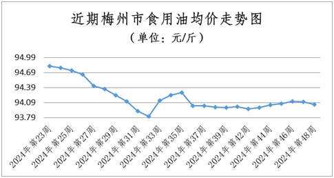 糧油價(jià)格保持穩(wěn)定。本周糧食均價(jià)為3.22元/斤,環(huán)比(與2024年第46周相比,下同)持平;食用油均價(jià)為94.05元/桶(5L),環(huán)比微降0.05%。