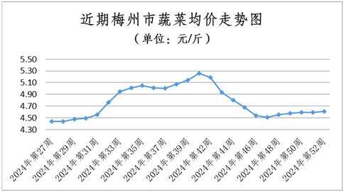 本周腌臘消費明顯增長,加上“梅馬”賽事產(chǎn)生的帶動效應(yīng),餐飲業(yè)消費特征突出,豬肉價格繼續(xù)呈回升態(tài)勢;元旦將至,節(jié)日市場逐漸升溫,預(yù)計下周豬肉價格仍有窄幅上升空間。氣候穩(wěn)定,本周蔬菜價格延續(xù)上周微漲走勢;目前各地區(qū)氣溫接近常年同期或偏高,天氣形勢總體有利,蔬菜供應(yīng)仍有保障,預(yù)計下周價格季節(jié)性波動為主。