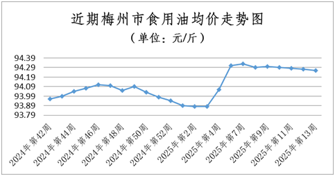 糧油價(jià)格保持穩(wěn)定。本周糧食均價(jià)為3.22元/斤,環(huán)比(與2025年第12周相比,下同)持平;食用油均價(jià)為94.26元/桶(5L),環(huán)比微降0.01%。