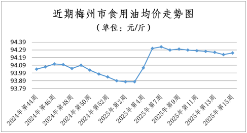 糧油價(jià)格保持穩(wěn)定。本周糧食均價(jià)為3.22元/斤,環(huán)比(與2025年第14周相比,下同)持平;食用油均價(jià)為94.25元/桶(5L),環(huán)比微降0.02%。