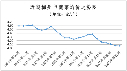 端午節(jié)期間農貿市場各類商品供應充足,豬肉需求雖較平日略有提升,但消費集中釋放效應不及春節(jié)等長節(jié),加之高溫天氣抑制肉類消費熱情,假期需求增量仍難抵生豬市場供應寬松的壓力,價格整體呈現偏弱運行態(tài)勢;隨著節(jié)后需求進一步回落,預計豬肉價格或延續(xù)小幅下跌走勢。節(jié)前我市雖雨水天氣較多,但未對蔬菜價格造成明顯影響,且當前已進入夏季蔬菜集中上市期,蔬菜供應較為充足,未出現節(jié)日性上漲,價格呈穩(wěn)中有降趨勢;短期內蔬菜產能將持續(xù)釋放,蔬菜價格或維持低位震蕩格局。