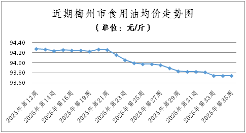 糧油價(jià)格基本穩(wěn)定。本周糧食均價(jià)為3.22元/斤,環(huán)比(與2025年第34周相比,下同)持平;食用油均價(jià)為93.74元/桶(5L),環(huán)比持平。