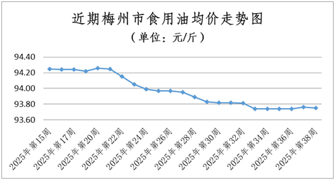 糧油價格基本穩(wěn)定。本周糧食均價為3.22元/斤,環(huán)比(與2025年第37周相比,下同)持平;食用油均價為93.75元/桶(5L),環(huán)比下降0.01%。