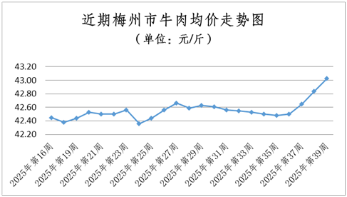 牛肉 | 元/斤 | 43.03 | 0.44% |