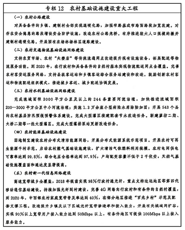 專欄12 農(nóng)村基礎設施建設重大工程