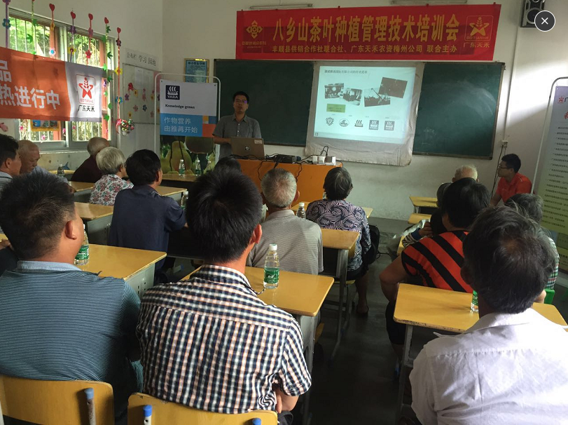 根據(jù)省供銷社綜合改革試點工作安排,結(jié)合豐順縣社綜合改革試點實施方案要求,實現(xiàn)供銷社農(nóng)資流通向農(nóng)技服務(wù)轉(zhuǎn)型,7月4日,豐順縣供銷聯(lián)社聯(lián)合廣東天禾農(nóng)資梅州公司在八鄉(xiāng)山鎮(zhèn)嬋聯(lián)村舉辦兩場茶葉種植技術(shù)培訓(xùn)會。此次培訓(xùn)邀請了挪威雅苒國際化肥有限公司高級農(nóng)藝師陳少聰老師就茶葉栽培管理、真假、優(yōu)劣農(nóng)資等相關(guān)技術(shù)知識進(jìn)行現(xiàn)場講解,來自豐順縣正八鄉(xiāng)農(nóng)林專業(yè)合作社和梅州正八茶業(yè)發(fā)展有限公司的100多名種植戶參加培訓(xùn)。通過此次培訓(xùn),為創(chuàng)建“技術(shù)—植?!獱I養(yǎng)”三位一體的服務(wù)模式,共建茶葉示范園,推行規(guī)范管理的標(biāo)準(zhǔn)化技術(shù),提升茶葉品質(zhì),提高茶葉產(chǎn)量,切實“為種植者增產(chǎn)增收服務(wù)”,認(rèn)真履行供銷社企業(yè)的社會責(zé)任,助農(nóng)惠農(nóng),從而推動八鄉(xiāng)茶葉產(chǎn)業(yè)的健康發(fā)展。