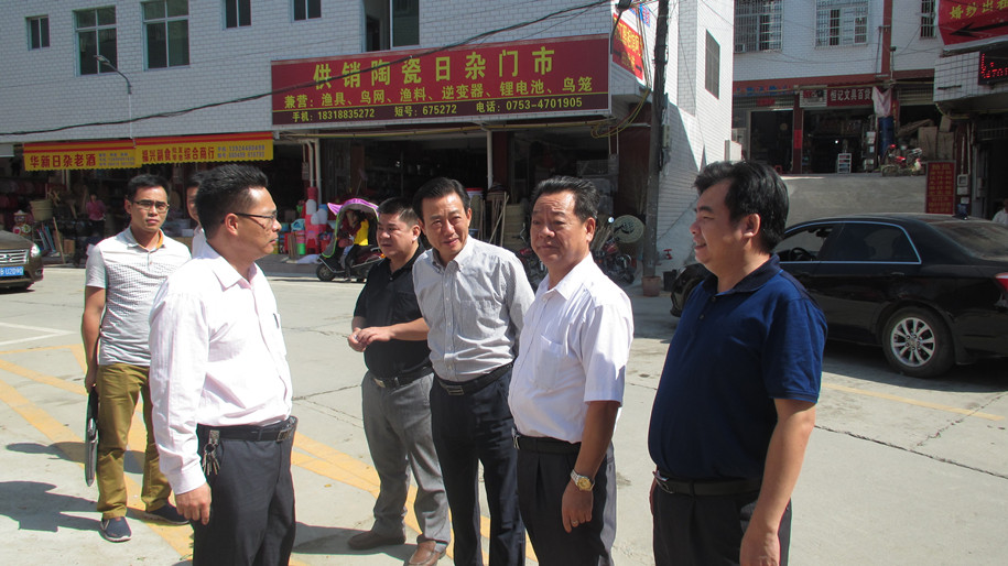 楊偉南主任(右三)察看五華縣周江基層供銷社危舊房改造現(xiàn)場(chǎng)