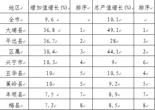 工業(yè)增加值和總產(chǎn)值增幅排序如下: