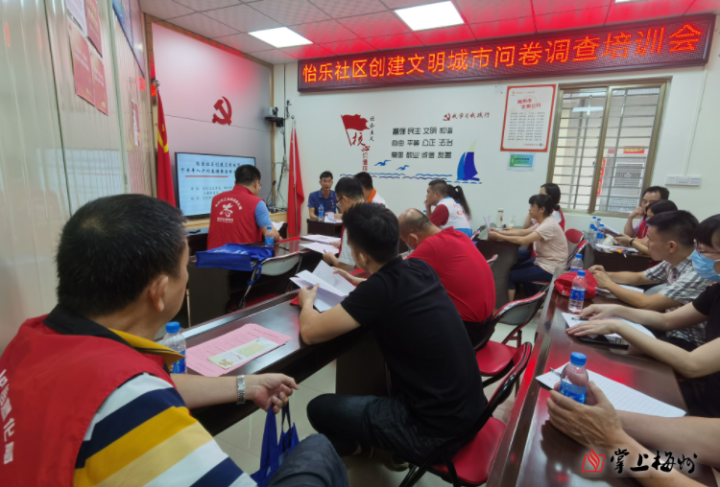 此外,在入戶問(wèn)卷調(diào)查宣傳活動(dòng)前,還舉行了怡樂(lè)社區(qū)創(chuàng)建全國(guó)文明城市下半年入戶問(wèn)卷調(diào)查宣傳工作培訓(xùn)會(huì),來(lái)自怡樂(lè)社區(qū)居委、市工信局、江南街道辦、梅江區(qū)就業(yè)服務(wù)中心的志愿者參加了培訓(xùn)。