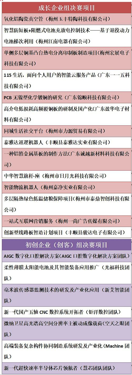附:梅州市2024年新一代電子信息產(chǎn)業(yè)創(chuàng)新創(chuàng)業(yè)大賽晉級決賽項目