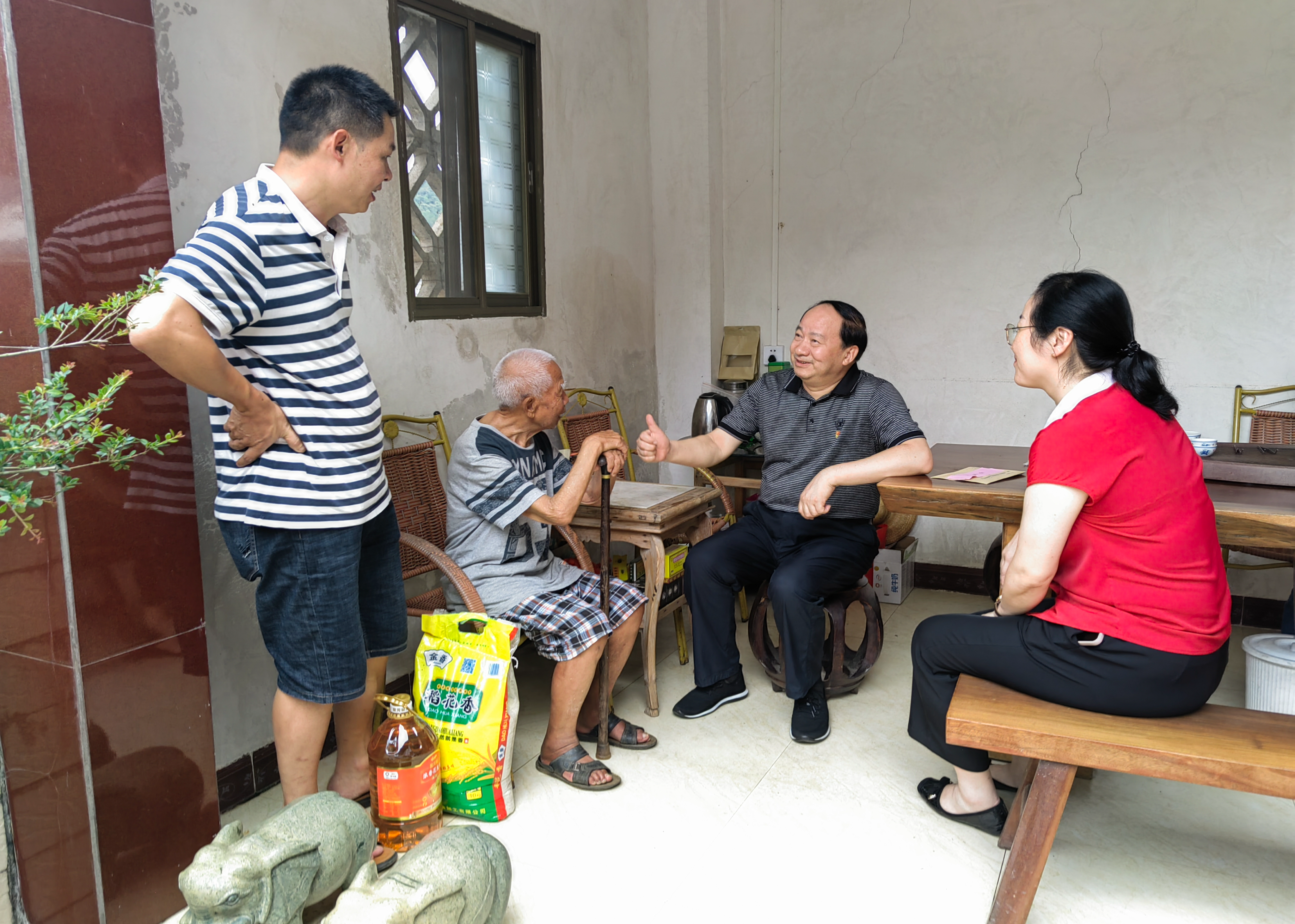 文威局長(zhǎng)一行來到南磜鎮(zhèn)藍(lán)源村,與鎮(zhèn)黨委和藍(lán)源村“兩委”黨員干部親切座談,詳細(xì)了解藍(lán)源村相關(guān)情況及村黨建工作情況,隨后到老黨員羅珍祥和王坤森家中,詳細(xì)了解他們的生活、家庭情況,送上慰問金和生活物資,致以節(jié)日祝福,鼓勵(lì)他們保持樂觀心態(tài),并希望老黨員發(fā)揮余熱,為鄉(xiāng)村振興發(fā)展多提寶貴意見。