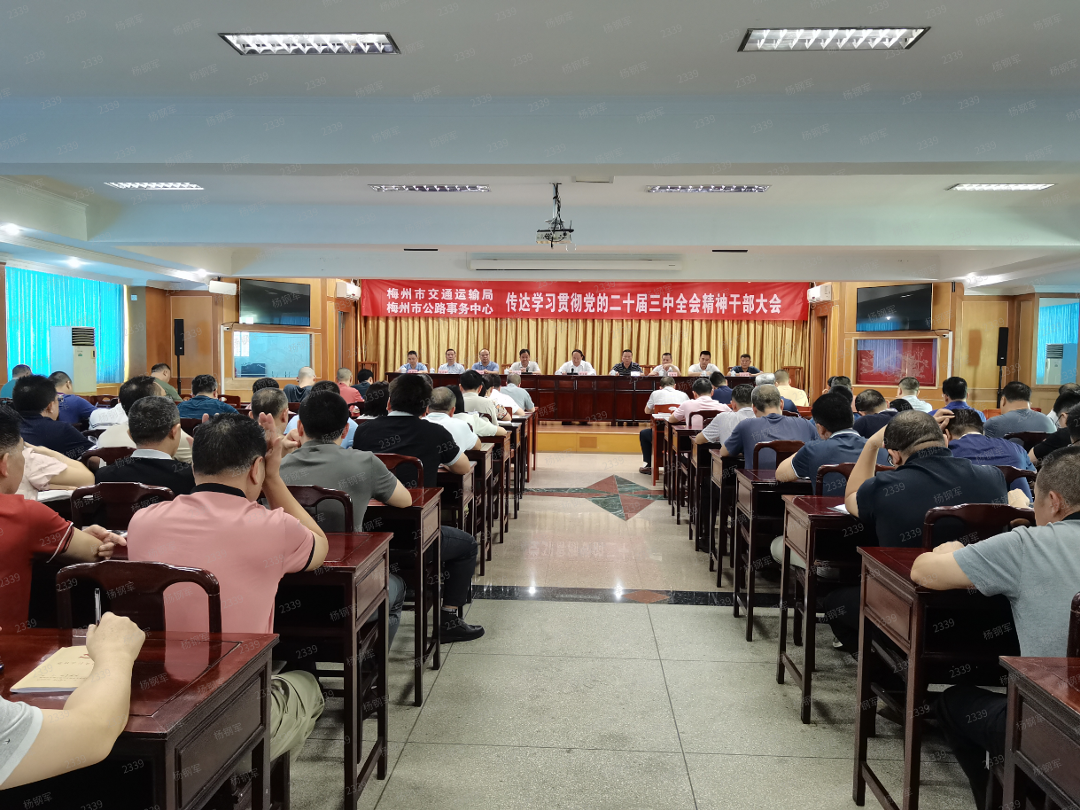 7月29日,市交通運輸局、市公路事務中心召開干部大會,傳達學習貫徹習近平總書記在黨的二十屆三中全會上的重要講話精神和全會精神,貫徹落實全省、全市干部大會精神,對抓好學習宣傳貫徹工作,推動進一步全面深化改革、推進中國式現(xiàn)代化的梅州交通實踐進行動員部署,推動落實。市人大常委會副主任、市交通運輸局黨組書記、市公路事務中心黨委書記謝文威主持會議并講話。市交通運輸局、市公路事務中心全體干部職工及下屬單位班子成員參加了會議。