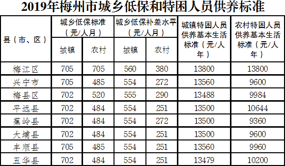 附件:2019年梅州市城鄉(xiāng)低保和特困人員供養(yǎng)標(biāo)準(zhǔn)